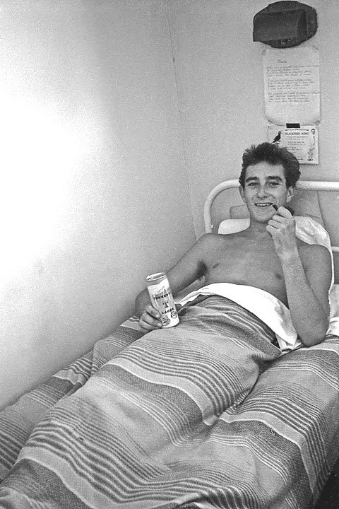 An unperturbed Sid Bottom relaxes quietly in his room after a hard morning's work, 1963 (Nick Adamson)